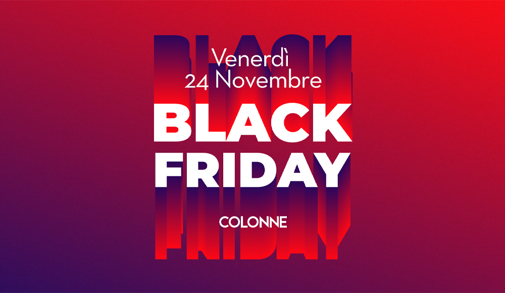BLACK FRIDAY COLONNE 2023 Scopri il Black Friday di COLONNE!Ti aspettiamo venerdì 24 novembre con sconti e promozioni dei nostri negozi.