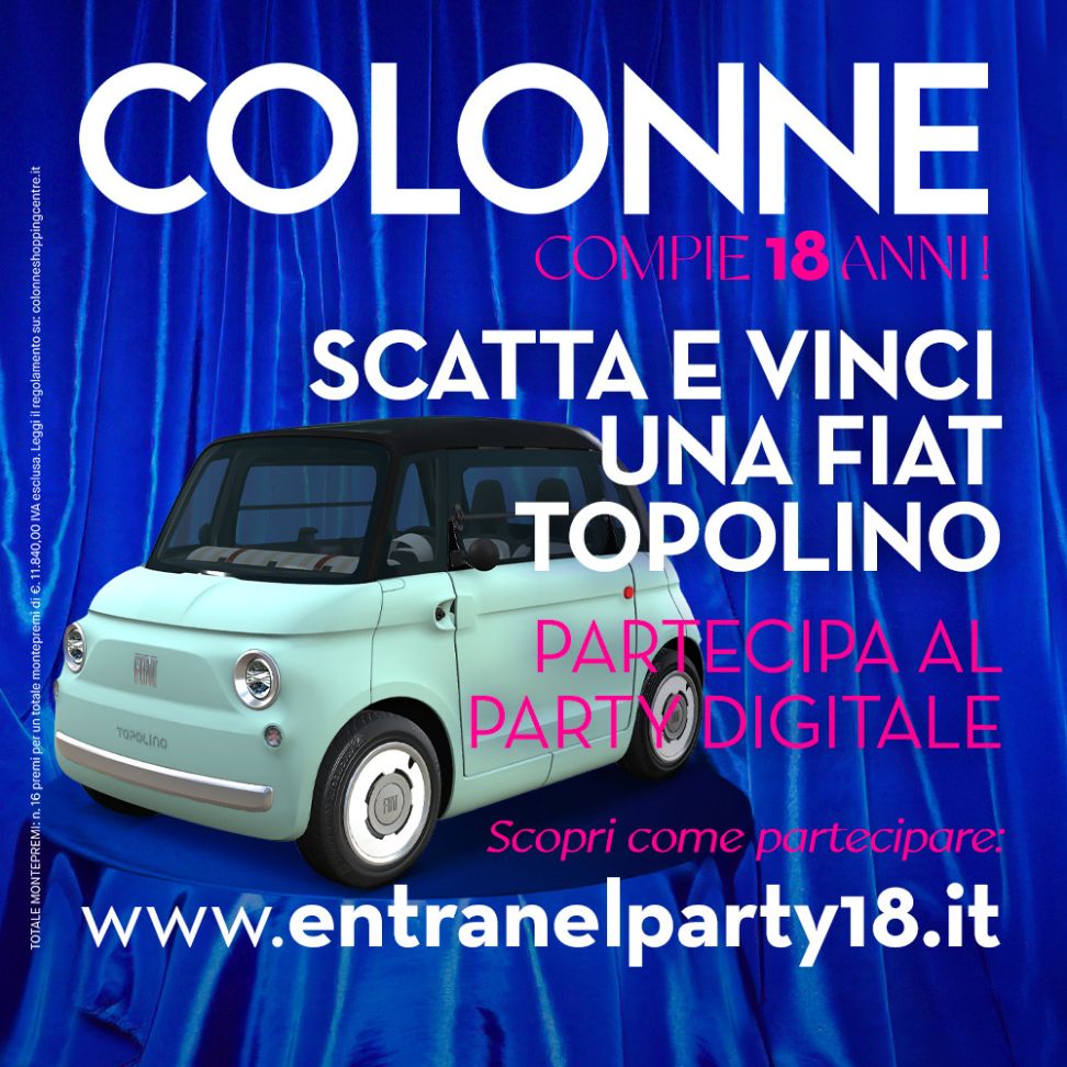 📸 Scatta 18 selfie, uno per ciascuna delle location iconiche del territorio di Brindisi. La prima tappa? Proprio al Colonne Shopping Centre, accanto alla Fiat Topolino!🚗