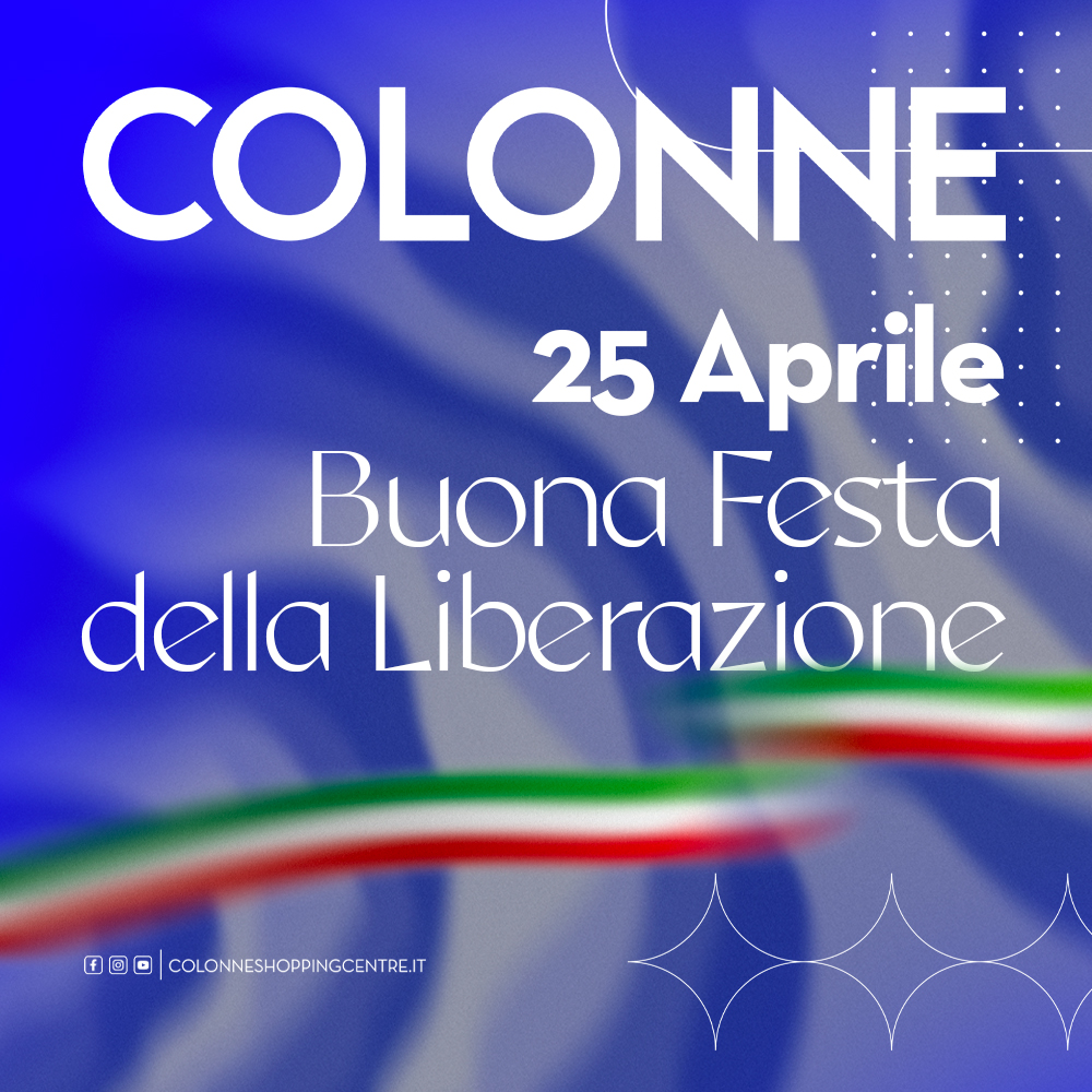 Buona Festa della Liberazione Vi ricordiamo che il 25 aprile Colonne Shopping Center resterà chiuso per la Festa della Liberazione!