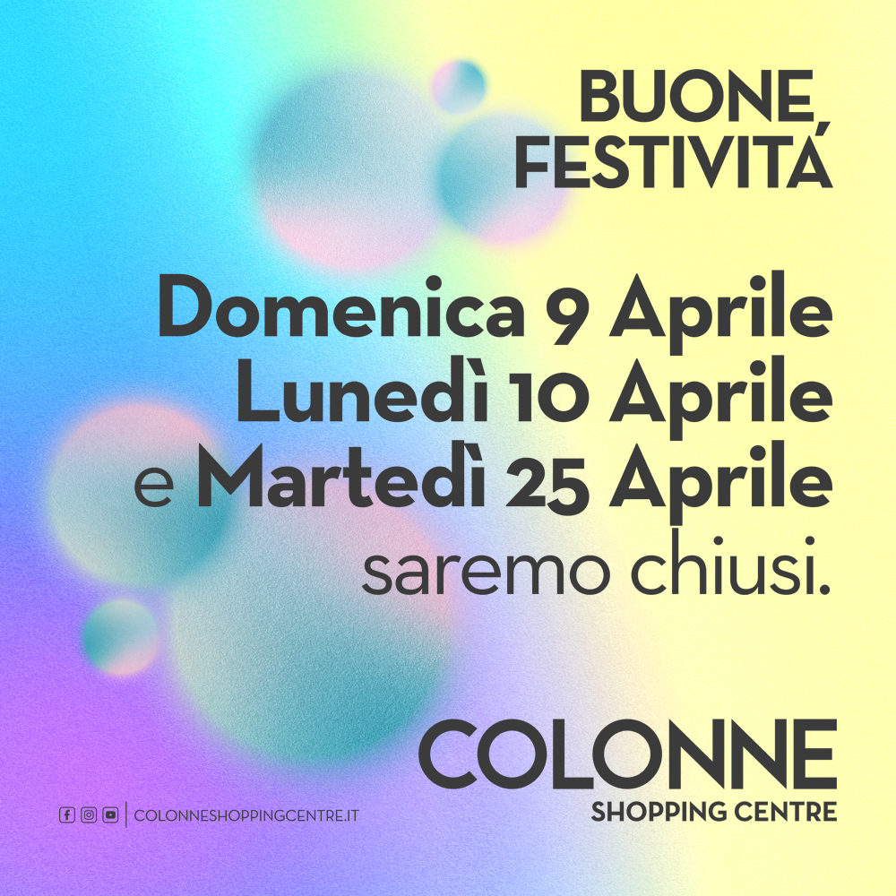 Festività Aprile 2023 Buone festività! Vi ricordiamo che Domenica 9 Aprile, Lunedì 10 Aprile e Martedì 25 Aprile saremo chiusi.