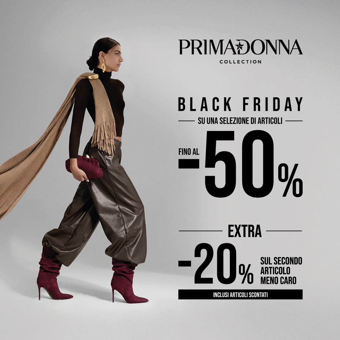 Il momento più atteso dell’anno è arrivato: il Black Friday ti aspetta da Primadonna Collection con sconti fino al -50% su una selezione di articoli e l’extra 20% sul secondo articolo meno caro acquistato! ✨ Il tuo stile, senza rinunce! ✨#PrimadonnaCollection #BlackFriday #FW2526