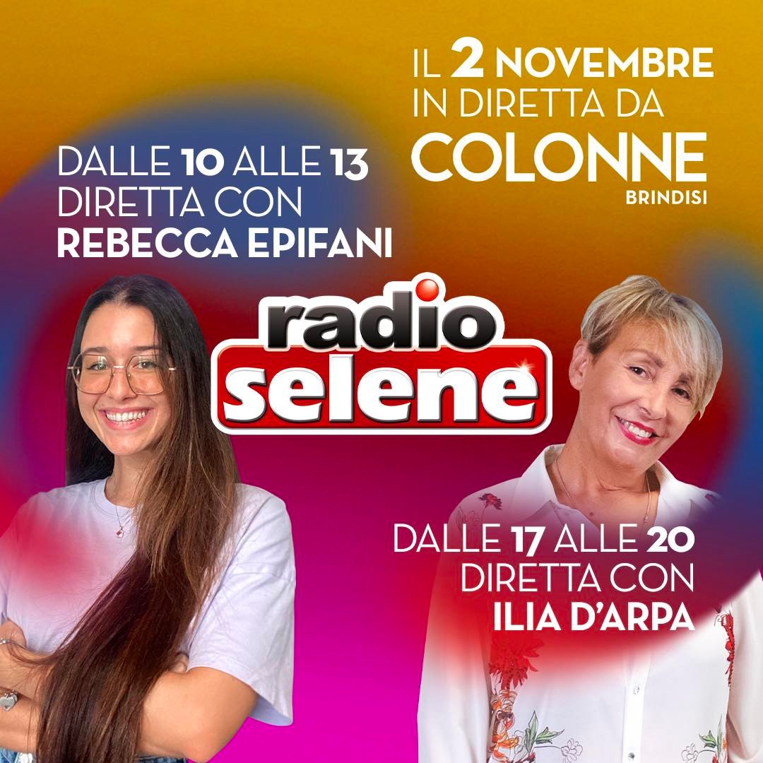 Radio Selene 📍Radio Selene in galleria. Sabato 2 novembre doppio appuntamento: ⭐️dalle 10 alle 13 con Rebecca Epifani ⭐️dalle 17 alle 20 con Ilaria D’Arpa Non perdetevi questa occasione di ascoltarla in galleria oppure in radio 📻 oppure online!