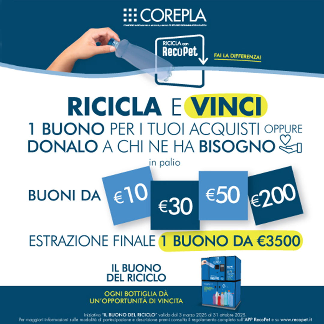 Fino al 31 ottobre con ogni bottiglia riciclata avrai l’opportunità di vincere tante gift card e partecipare all’estrazione finale! Scopri di più sul sito www.recopet.it